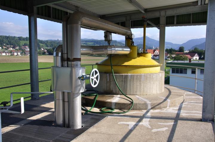 Der Gasbehälter mit einem Speichervolumen von 500 m³ Faulgas ist mit einer gewichtsbelasteter Membran zur Regelung des Gasdruckes von ca. 350 mbar ausgestattet. Weiters sind unterirdische Gasleitungen inklusive eines Entwässerungsschachtes mit händisch zu bedienenden Kondensatschleusen installiert.