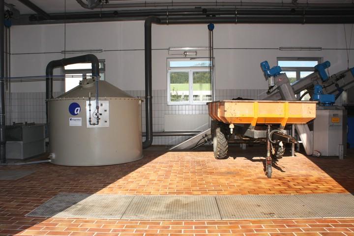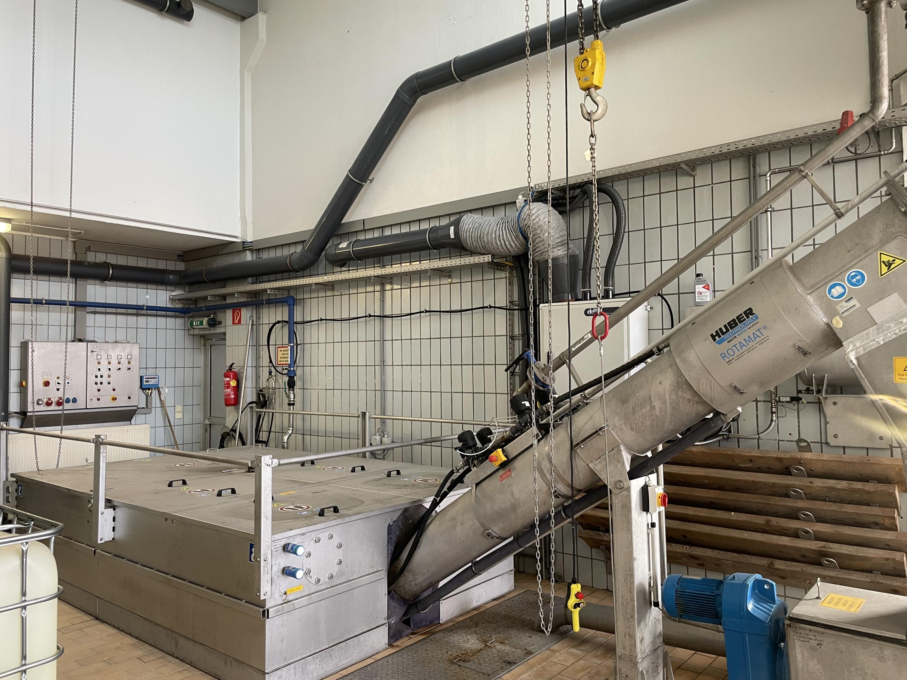 Als mechanische Vorreinigung dient eine Siebanlage der Firma HUBER, Typ ROTAMAT RPPS mit 1,80 Meter Durchmesser und mit einem 3mm Lochblech-Sieb.