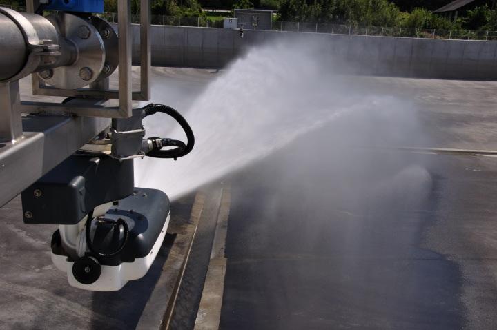 Becken in dieser Größe wurden bis dato nicht gebaut, da es bisher keine adäquate Reinigungsmethode gegeben hat. Alle bisher auf dem Markt befindlichen automatischen Reinigungseinrichtungen sind für Becken mit einer Breite von ca. 8 m begrenzt. Es musste somit für die Becken eine Lösung gefunden werden, bei der der gesamte Beckenboden und auch die Beckenwände automatisch gereinigt werden können. Die automatische Reinigung ist deshalb erforderlich, weil die Regenbecken vor allem in den Nachtstunden entleert werden, da zu dieser Zeit die Belastung der Kläranlage mit Abwässern gering ist. Es müssen somit auch die Becken nach dem Entleeren in der Nacht gereinigt werden um die Geruchsbelastung durch den Bodenschlamm zu minimieren.