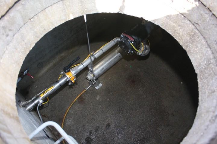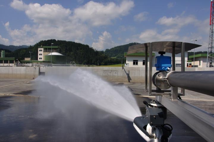 Bei Regenwetter und vor allem bei Starkregenereignissen wird in den Regenüberlaufbecken ein Gemisch aus häuslichem Abwasser und Regenwasser, das gemeinsam über den Zulaufkanal auf die Kläranlage geleitet wird und nicht sofort in der biologischen Stufe verarbeitet werden kann, zwischengespeichert. Die Becken füllen sich je nach Abwasseranfall und werden nach Abklingen des Regenereignisses über ein Schneckenpumpwerk entleert. Das Wasser aus den Becken wird in der Kläranlage biologisch gereinigt. Am Beckenboden setzt sich ein Gemisch aus organischen und anorganischen Feinteilen als Bodenschlamm ab. Wird dieser Schlamm im Becken belassen, treten neben hygienischen Problemen auch große Geruchsprobleme auf. Je nach Regenereignis kann der Bodenschlamm eine Dicke von mehrenen cm betragen. Der Bodenschlamm wird nach dem Leerpumpen mit den Wasserwerfern in die zentrale Sammelrinne gespritzt und fließt dort in das Schneckenhebewerk.