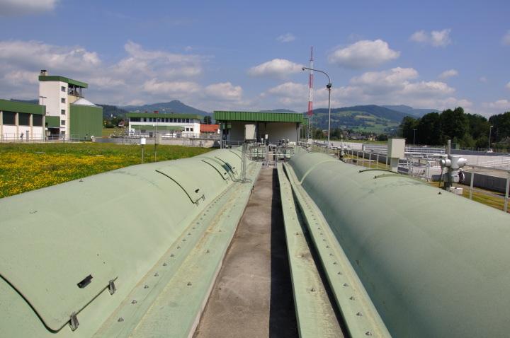 Die beiden Belebungsbecken sind oben offene runde Schachtelbecken mit jeweils einem Durchmesser von 35 m und einer Wassertiefe von 3,80 m.