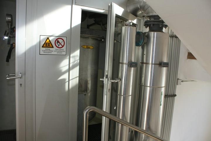 Die Luft, die ins Freie gelangt wird vorher mit einem Biofilter, in dem durch Mikroorganismen die Geruchsstoffe aus der Luft entfernt werden, gereinigt.