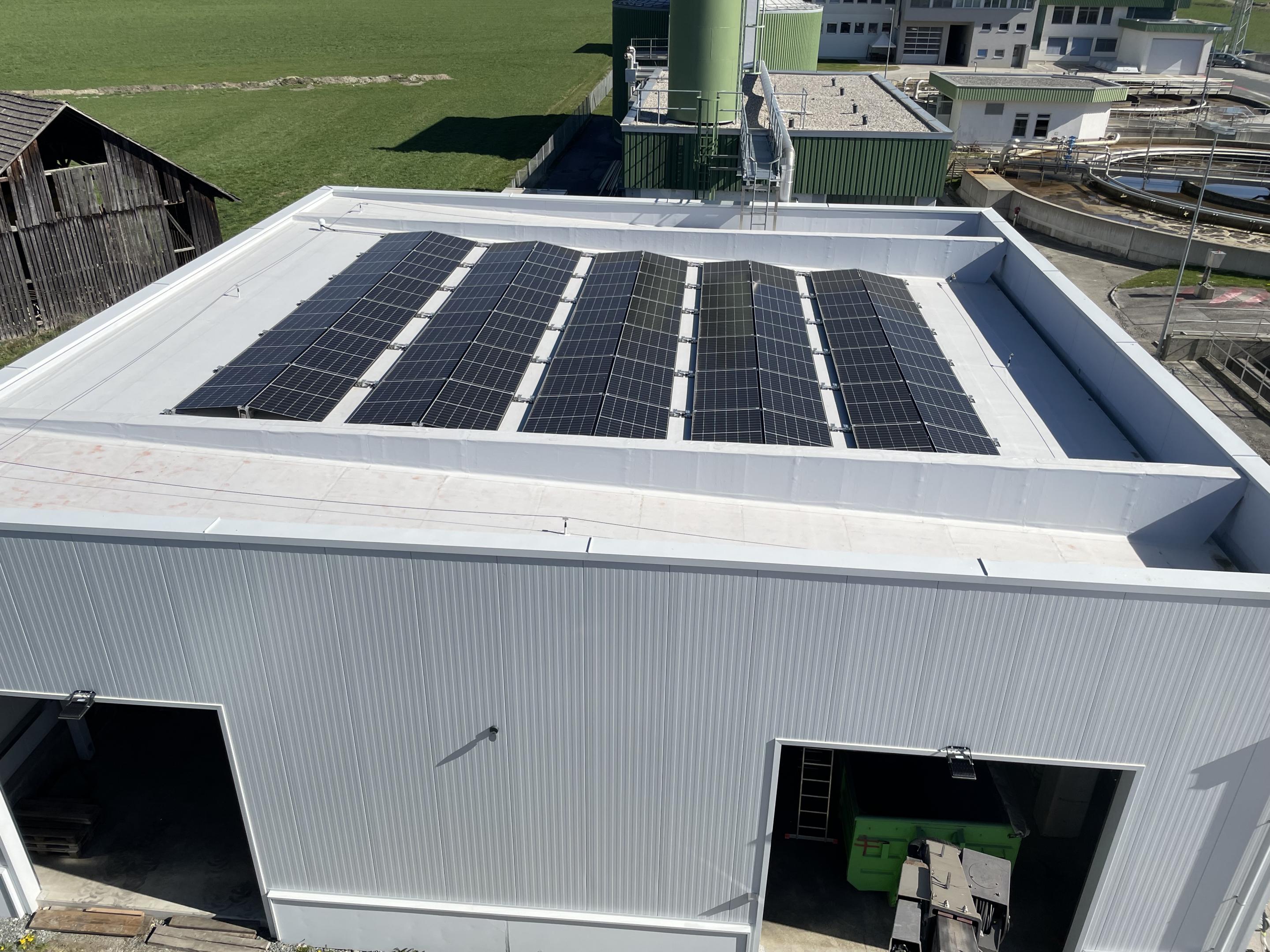 Auf dem Dach der Lagerhalle sowie über den Nachklärbecken wurde eine Photovoltaikanlage installiert. Damit nutzt der Wasserverband Ossiacher See die Sonnenenergie zur nachhaltigen Eigenstromerzeugung.